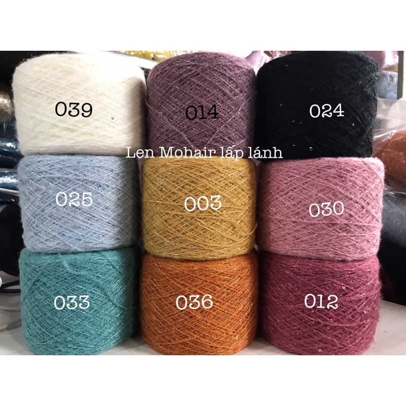 Len Mohair lấp lánh kết hợp kim tuyến và hạt sa , lớp lông êm mềm của Mohair bao bọc làm êm kim tuyến rất nhiều .