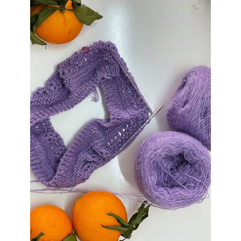 Giới thiệu Len Mohair lấp lánh kết hợp kim tuyến và hạt sa , lớp lông êm mềm của Mohair bao bọc làm êm kim tuyến rất nhiều .