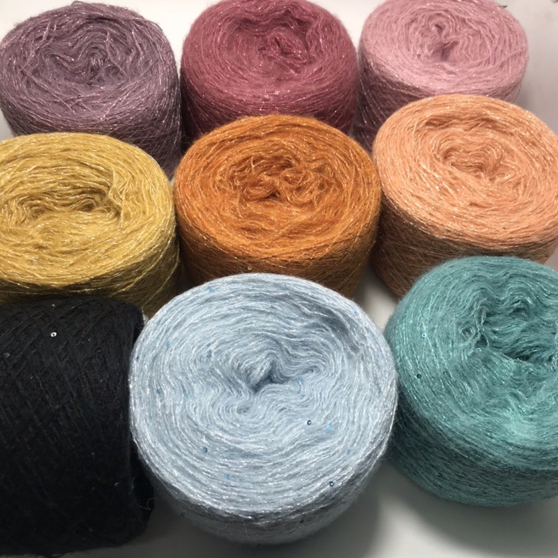 Sở thích & Sưu tầm > Dụng Cụ May Vá || Len Mohair lấp lánh kết hợp kim tuyến và hạt sa , lớp lông êm mềm của Mohair bao bọc làm êm kim tuyến rất nhiều .Còn hàng
