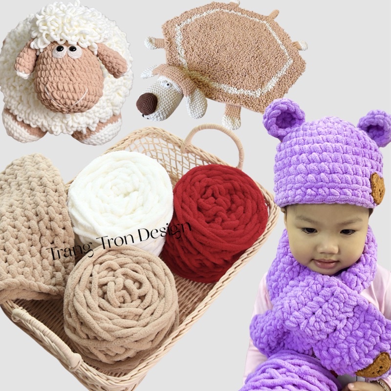 Giới thiệu LEN NHUNG ĐŨA, Len Bông Sữa, Len Sợi To (Miễn Phí Học Móc Thảm Thú Bông Khi Mua Nguyên Sét)