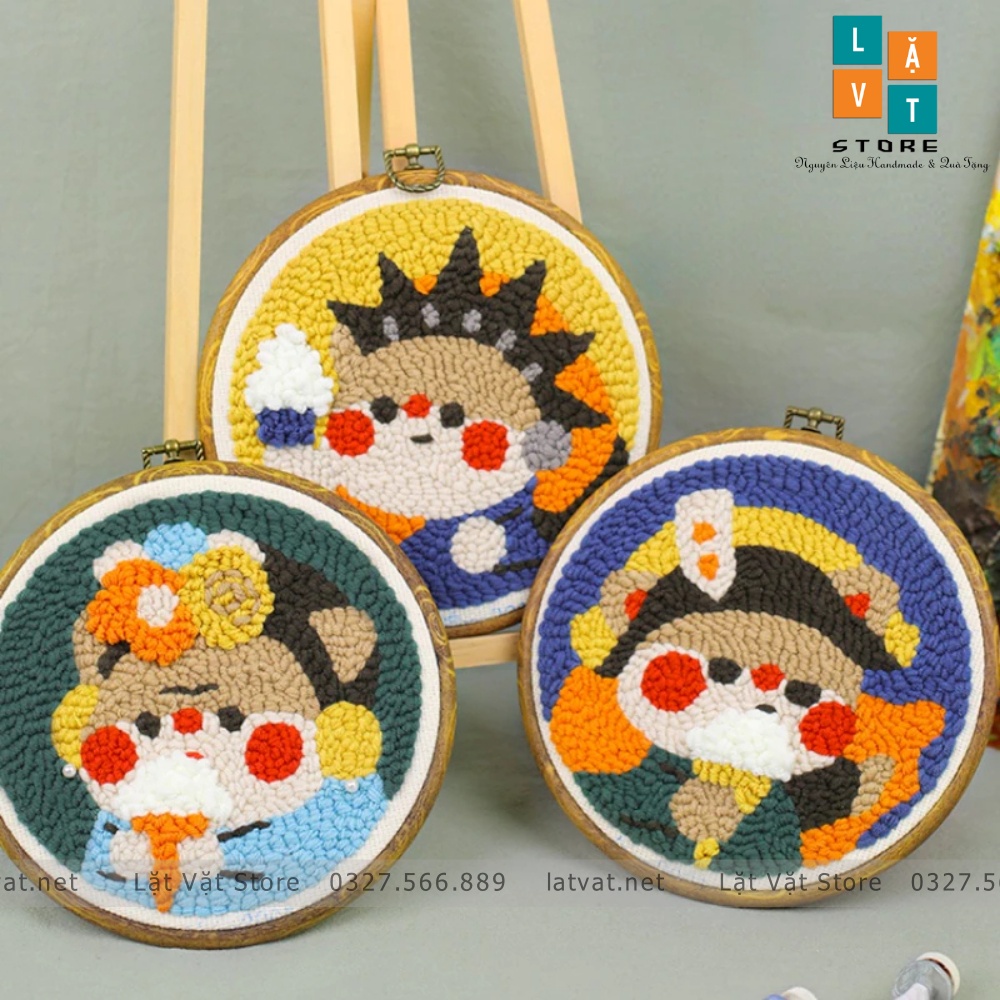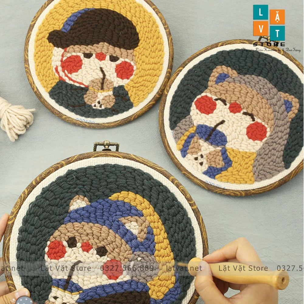 Bộ Len Xù Chuột Trà Sữa- Punch Needle Mouse - Có video hướng dẫn - Trang trí bày biện xin đẹp, decor chung cư, quà tặng