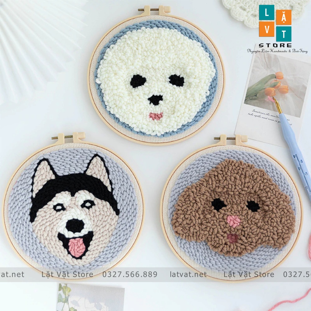 Sở thích & Sưu tầm > Dụng Cụ May Vá || Bộ Len Xù Cún Con Dễ Thương- Có Video hướng dẫn cho người mới bắt đầu - punch needle dog, trang trí decor phòng làm việcCòn hàng