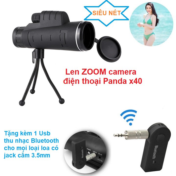 Len zoom cho camera điện thoại 40x60 nhìn xa đến 800m + Tặng kèm 1 usb phát nhạc Bluetooth car