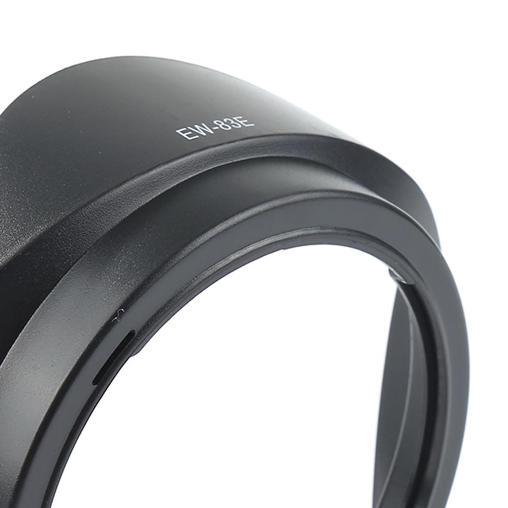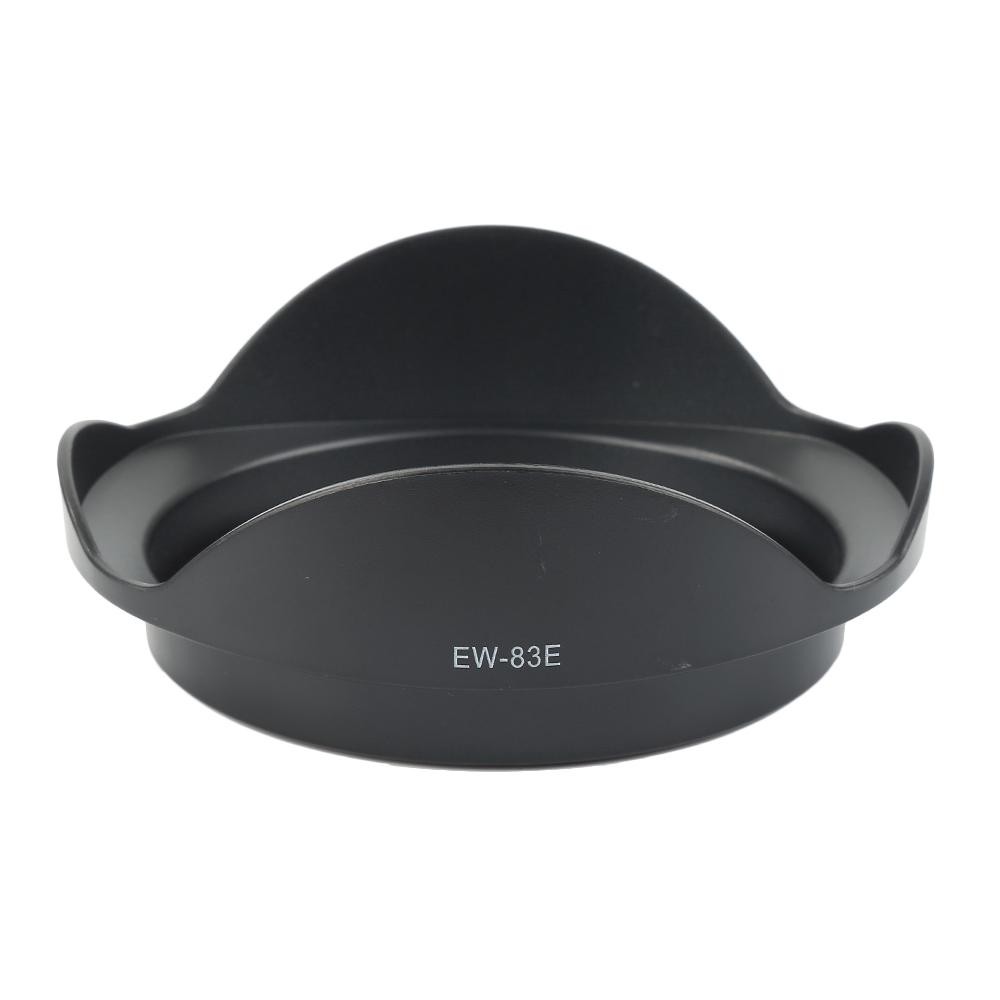 Lens hood Loa che nắng EW-83E ( EW 83E) cho ống kính Canon 17-40 mm , 16 -35 mm và 10-22 mmHood Canon EW - 83E Giúp ngăn không cho ánh sáng từ 2 bên chiếu vào những thấu kính ngoài cùng. Nếu không ngăn ánh sáng từ những nguồn này, ảnh sẽ bị vết mờ (flare) và giảm độ tương phản (contrast). Khi sử dụng loa che nắng, ảnh sẽ cho màu sắc thực hơn (richer color) và có độ sâu hơn (deeper saturation).