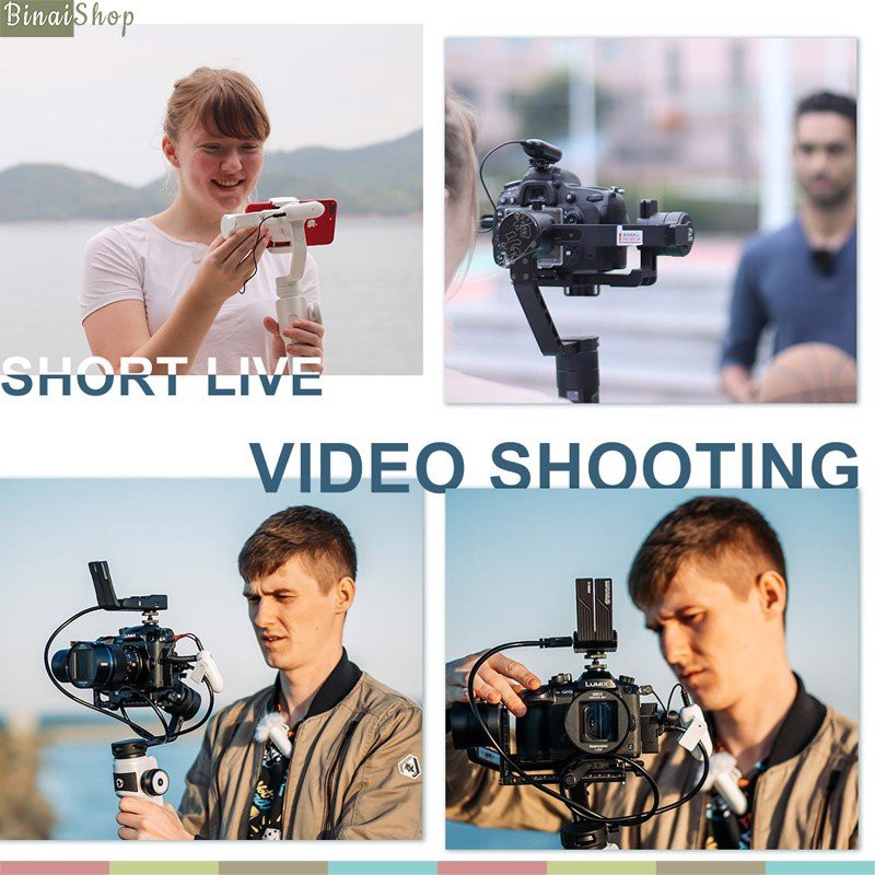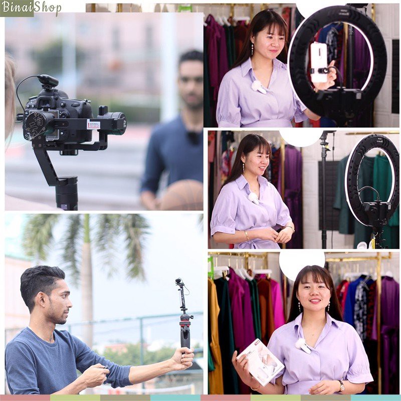 Hai tùy chọn micro built-in sẵn trên thân micro hoặc micro lavalier cài áo có thể sử dụng đa dạng trong nhiều tính huống.