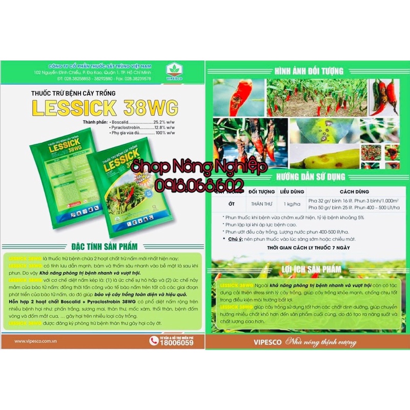 Giới thiệu LESSICK 38WG 50gr, sản phẩm đặc trị bệnh thán thư cho cây ớt.