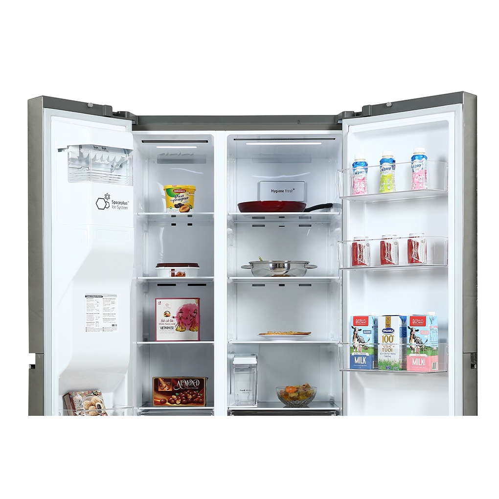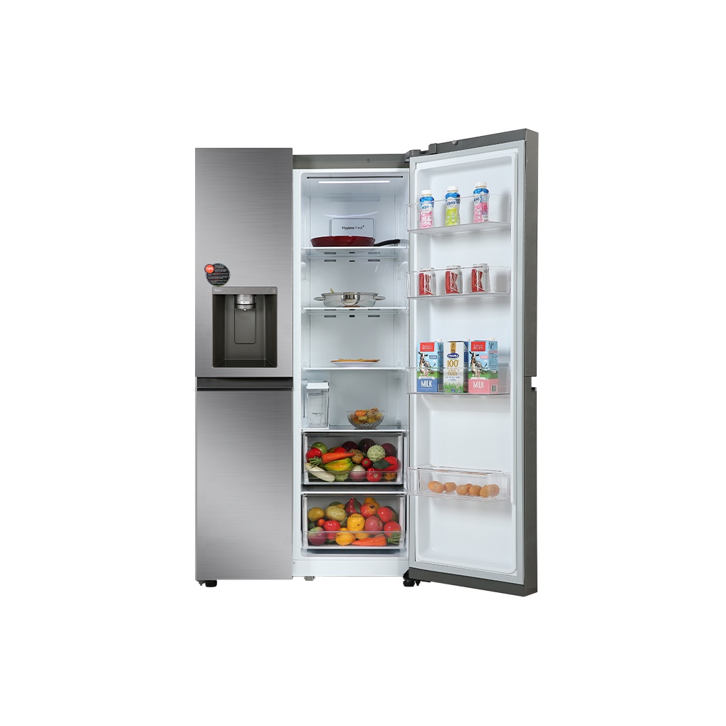 Tủ lạnh LG Inverter 635 Lít GR-D257JS có khay lấy nước ngoài diệt khuẩn UV nano tiện lợi, bộ lọc Hygiene Fresh+™ loại bỏ vi khuẩn, công nghệ làm lạnh DoorCooling+ làm lạnh từ cánh cửa tủ, ngăn làm đá tinh gọn SpacePlus™ tiết kiệm không gian tủ.