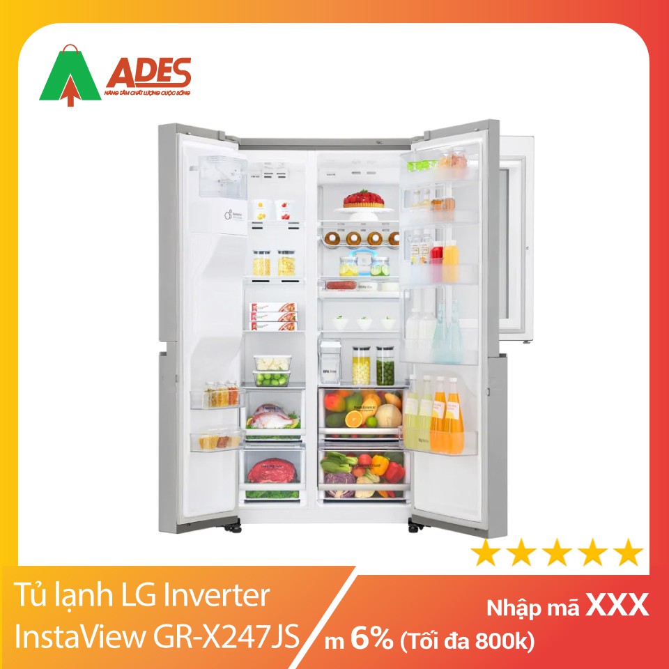 Giới thiệu [Mã 154ELSALE2 giảm 7% đơn 300K] [ LG INSTAVIEW ] Tủ lạnh LG Inverter InstaView Door-in-Door 601 lít GR-X247JS