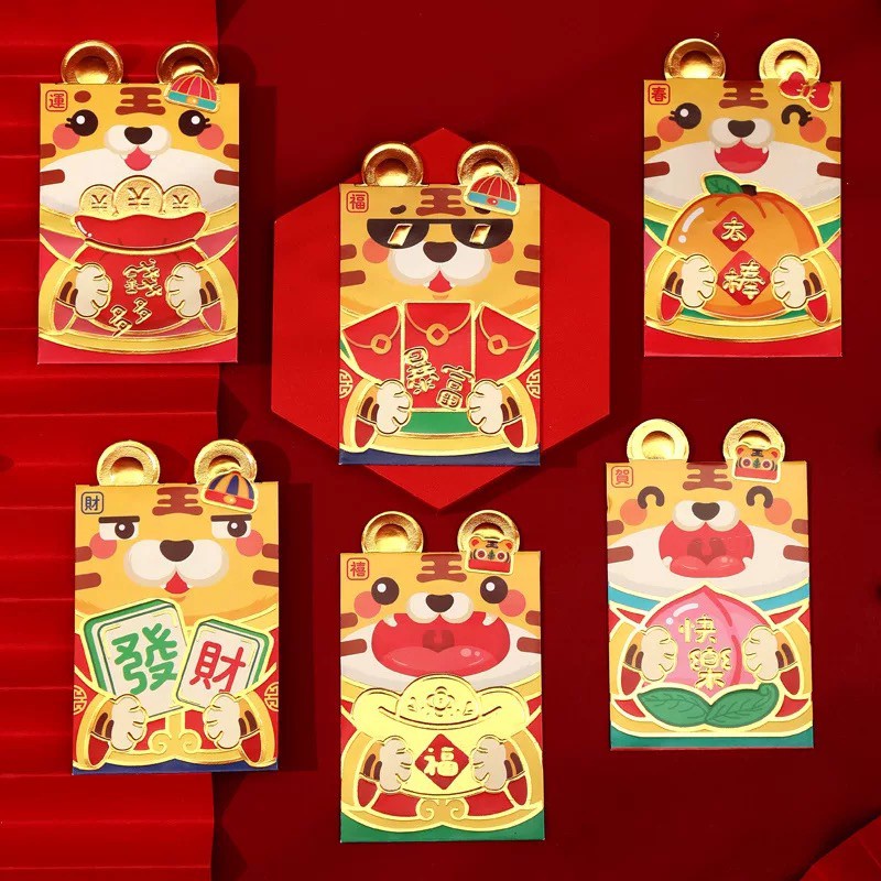 Giới thiệu Lì xì 2022, lì xì Nhâm Dần cute độc lạ hình con hổ dọc 1 set 6 cái - [MS002]