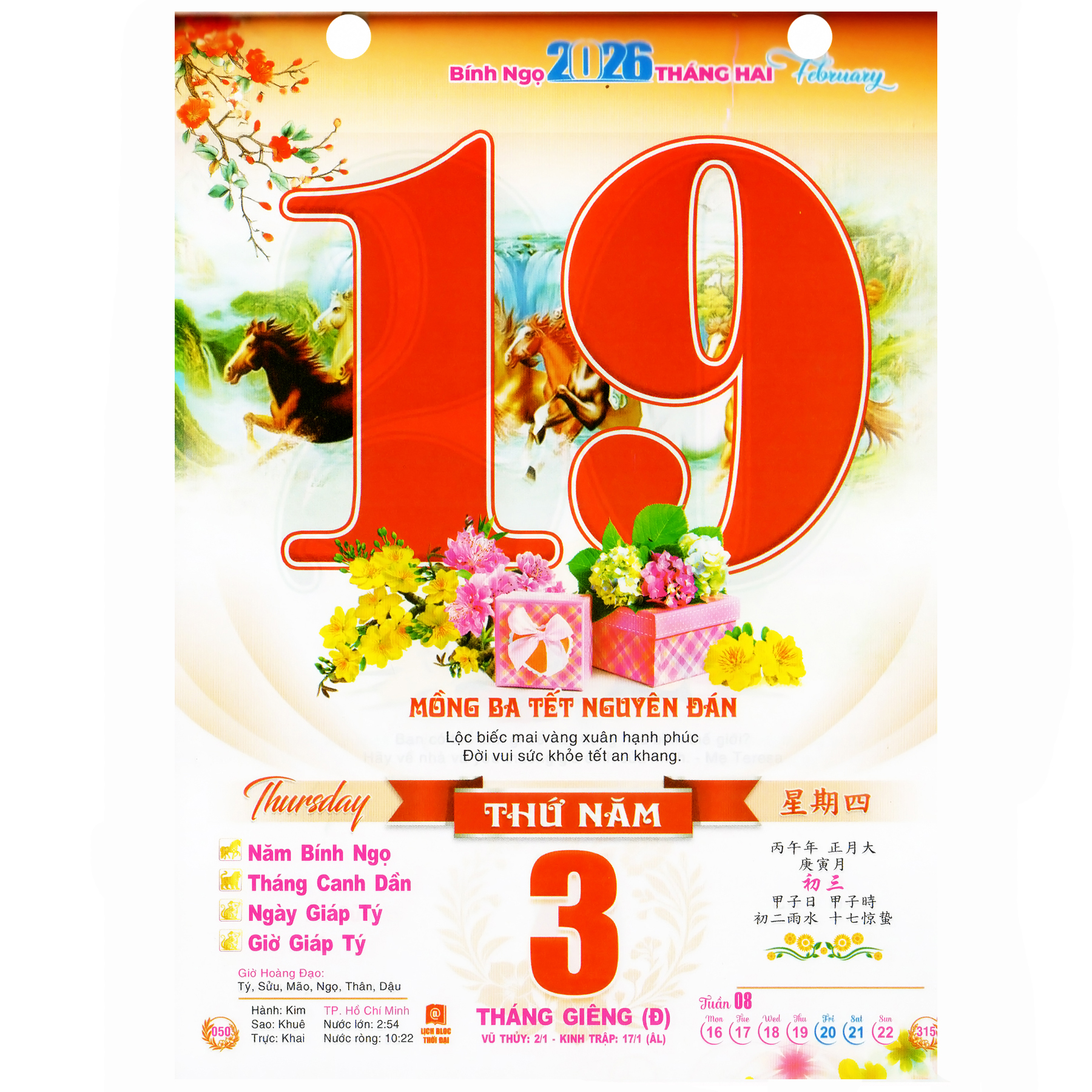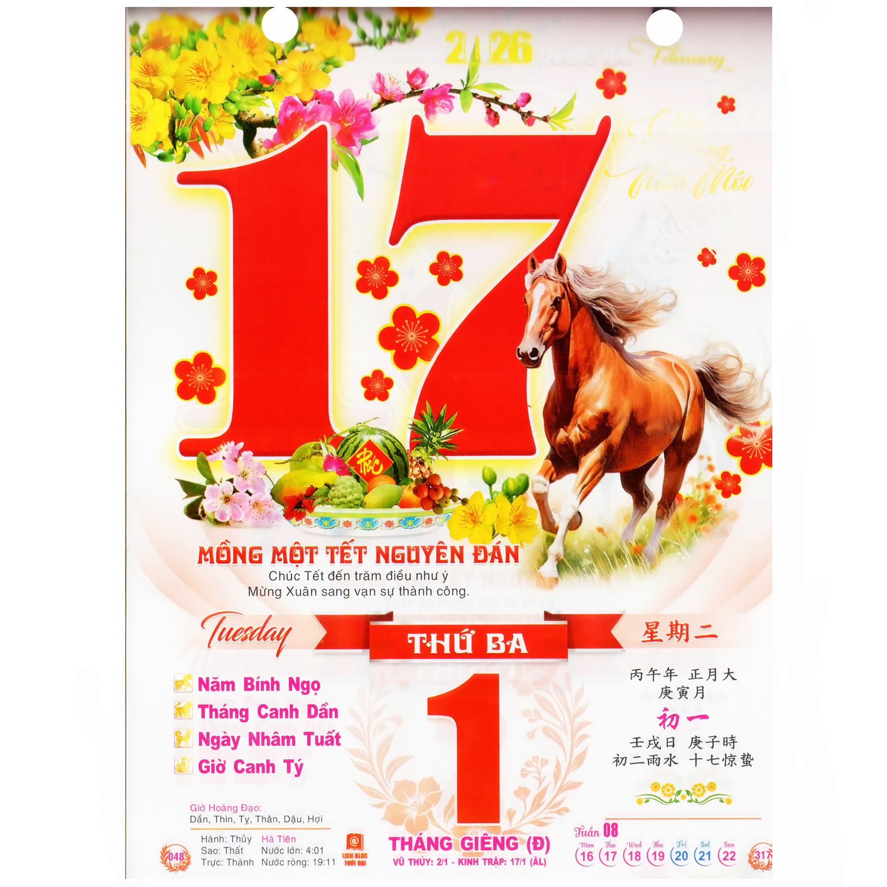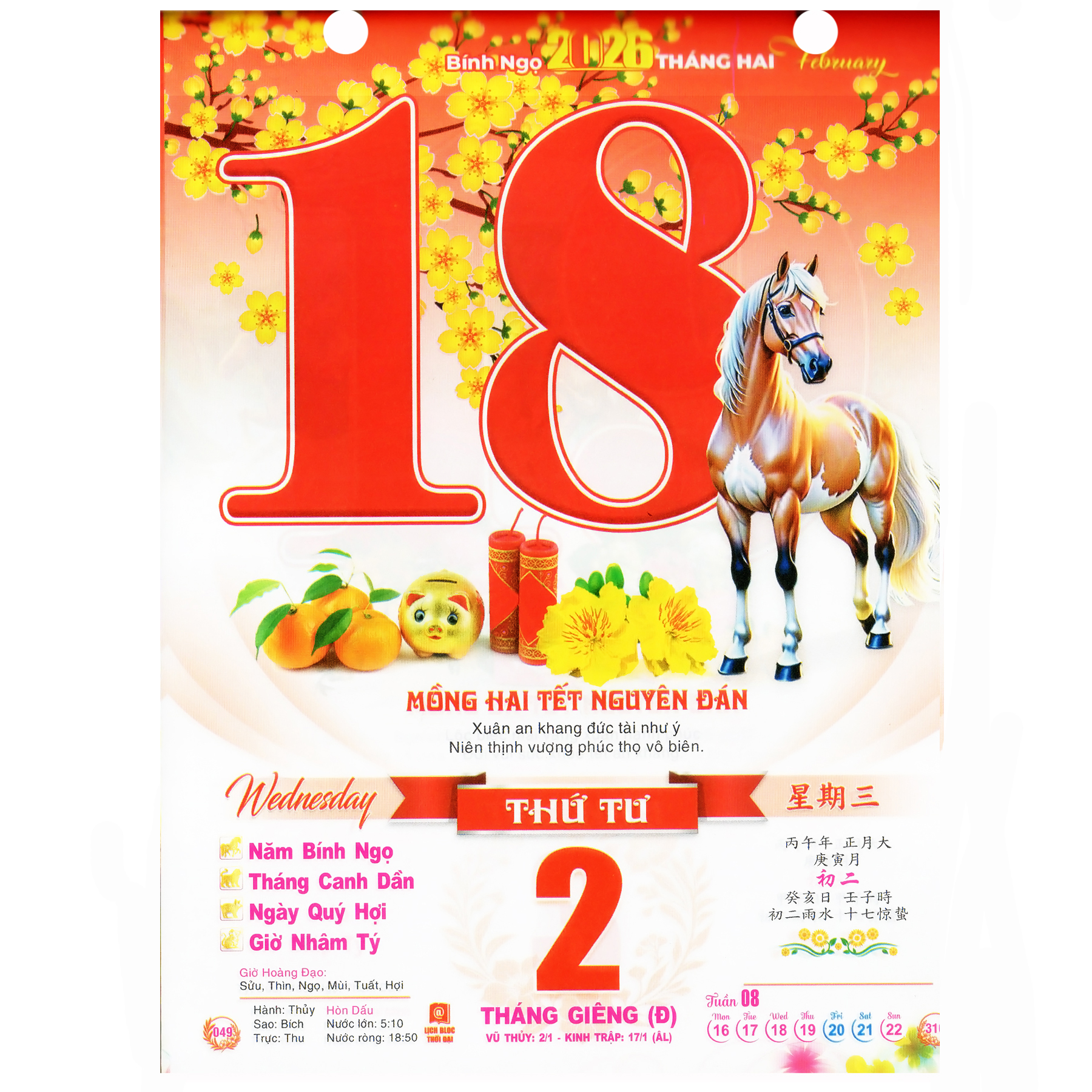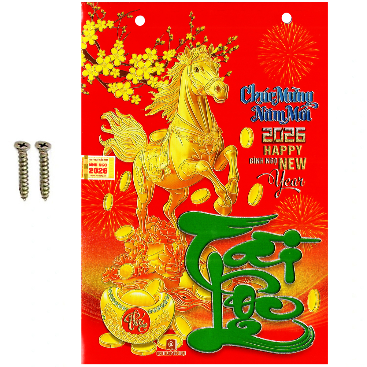 Lịch Bloc Tài Lộc 2026 Bính Ngọ có tem niêm yết (khổ giấy 14*20) kèm ốc vít giấy bóng ánh nhũ kim