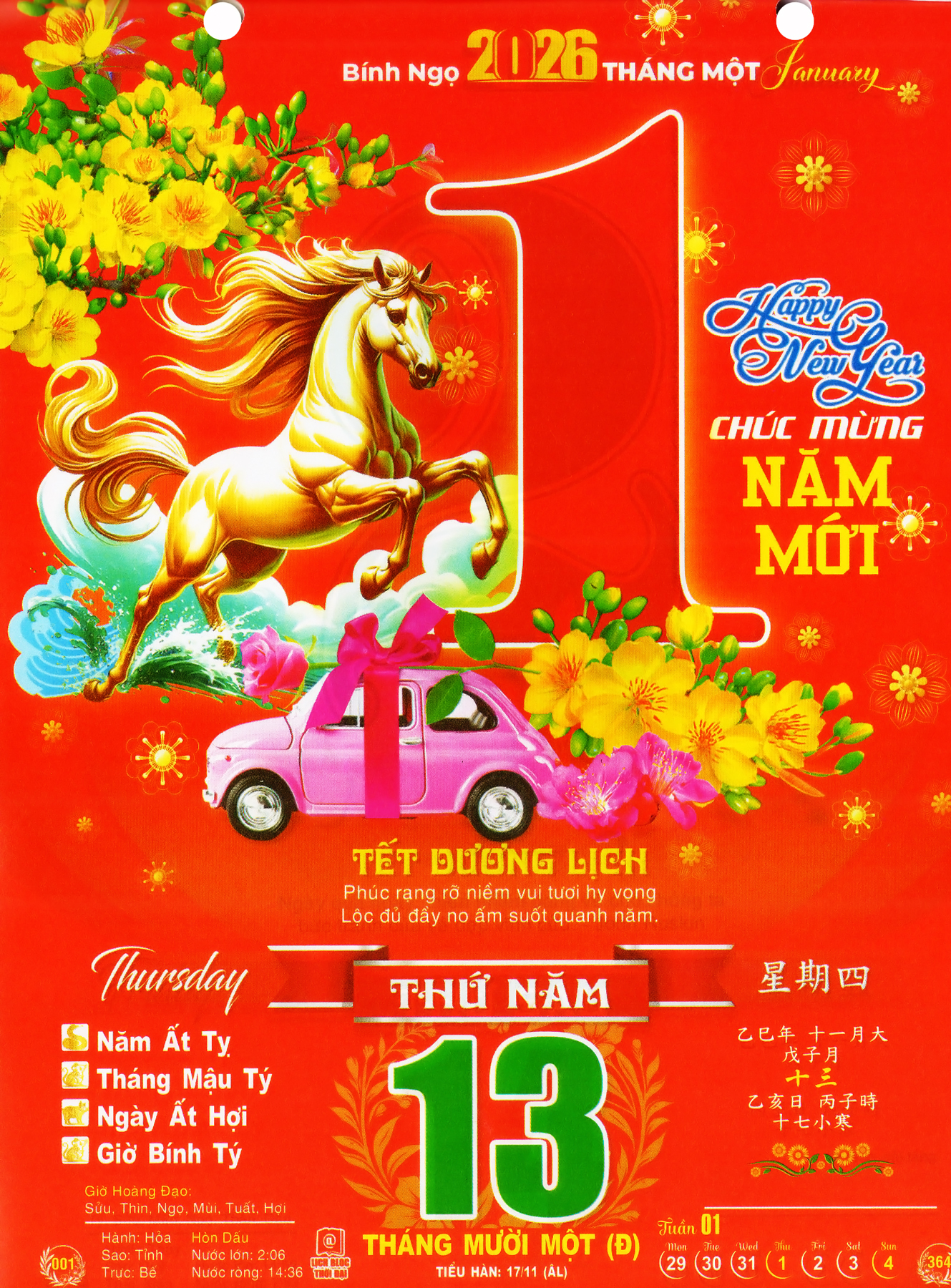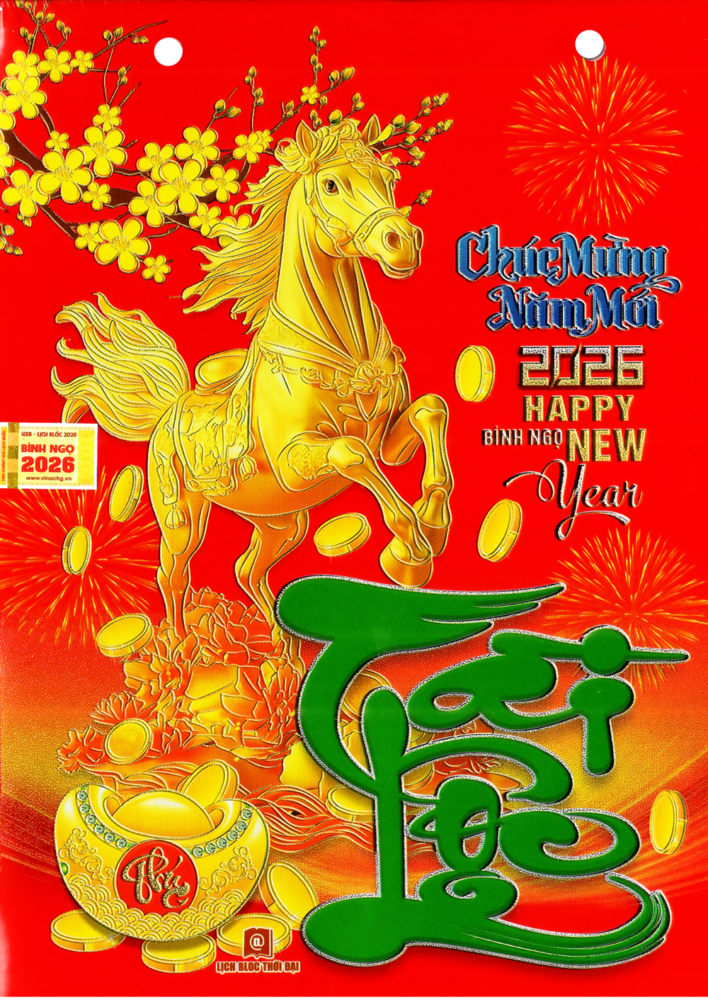 Giới thiệu Lịch Bloc Tài Lộc 2026 Bính Ngọ có tem niêm yết (khổ giấy 14*20) kèm ốc vít giấy bóng ánh nhũ kim