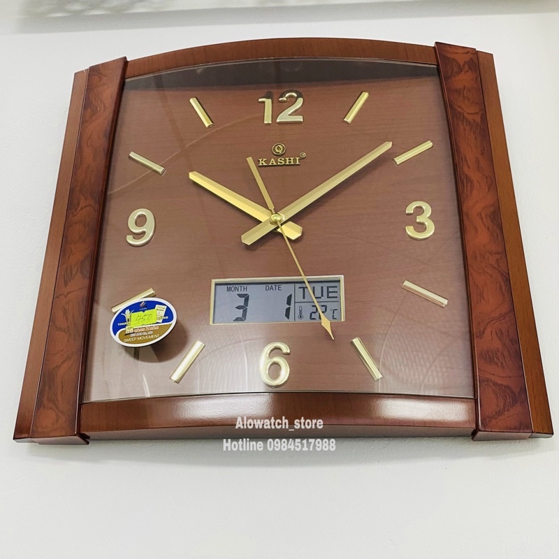 Giới thiệu [ Có lịch ] Đồng hồ treo tường kashi K217 mặt nâu kim trôi siêu tĩnh có lịch tặng pin panasonic