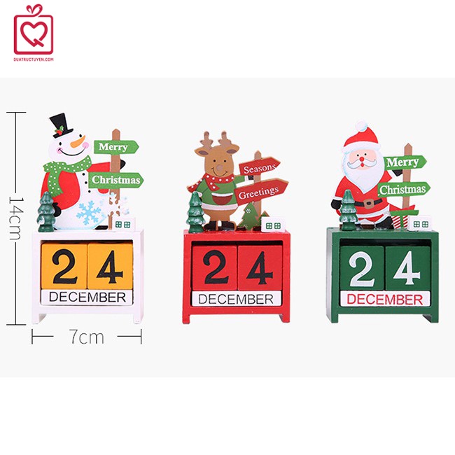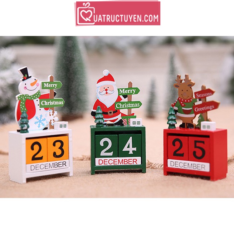 Lịch gỗ giáng sinh để bàn - Quà tặng noel hình ông già Noel, tuần lộc người tuyết
