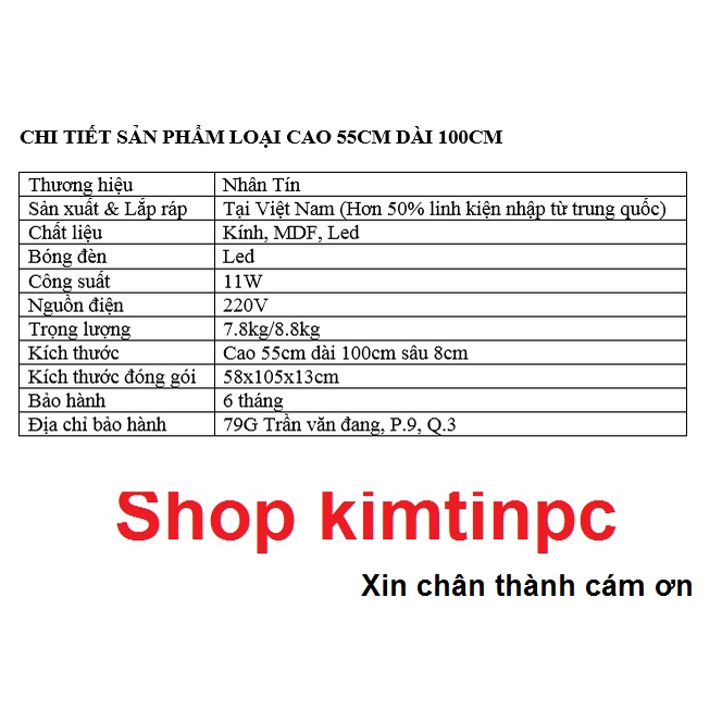 Kích thước : 55 x 100 x 8cm. Cao 55cm, ngang 100cm, bề dầy 8cm