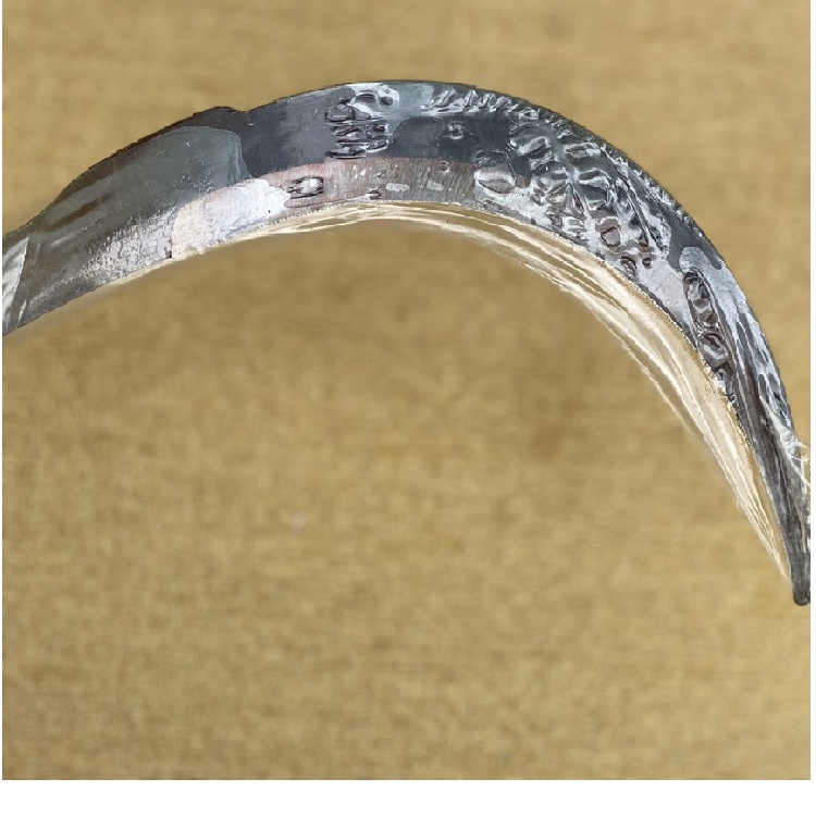 - Liềm được làm bằng thép HS – ADV (thép lò xo của Korea-Hàn Quốc), sử dụng chế độ nhiệt luyện phân cấp, đạt đến độ cứng 52 HRC tại phần lưỡi cắt nên có độ bền rất cao.