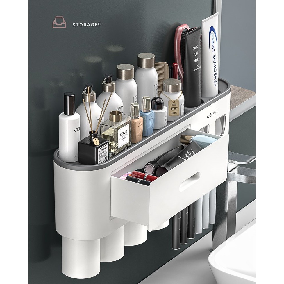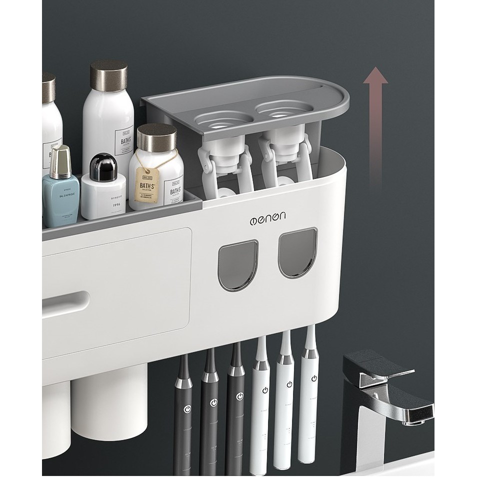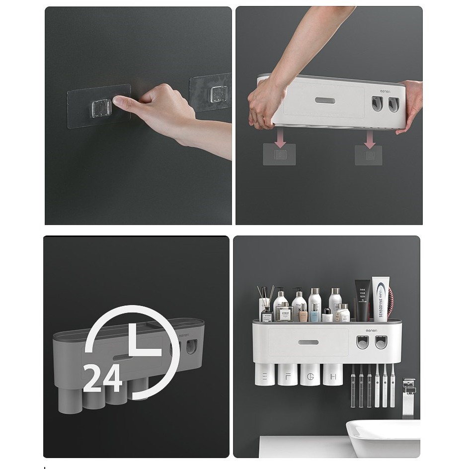 TÍNH NĂNG : Bộ liền 2 nhả kem đánh răng tự động OENON, Kệ treo bàn chải đánh răng dán tường