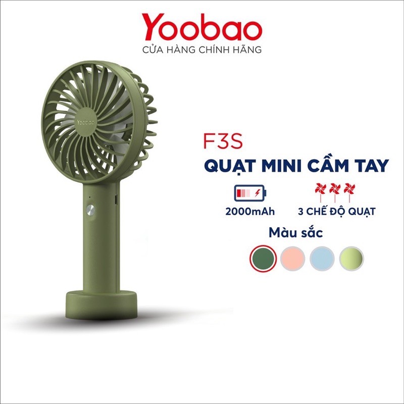 Điện Thoại & Phụ Kiện > Phụ kiện > Quạt USB & Quạt điện thoại || (dùng liên tục 11 tiếng) Quạt Yoobao mini cầm tay để bàn F3S dung lượng 3000 mAh - 3 tốc độ gió siêu mát chính hãngCòn hàng