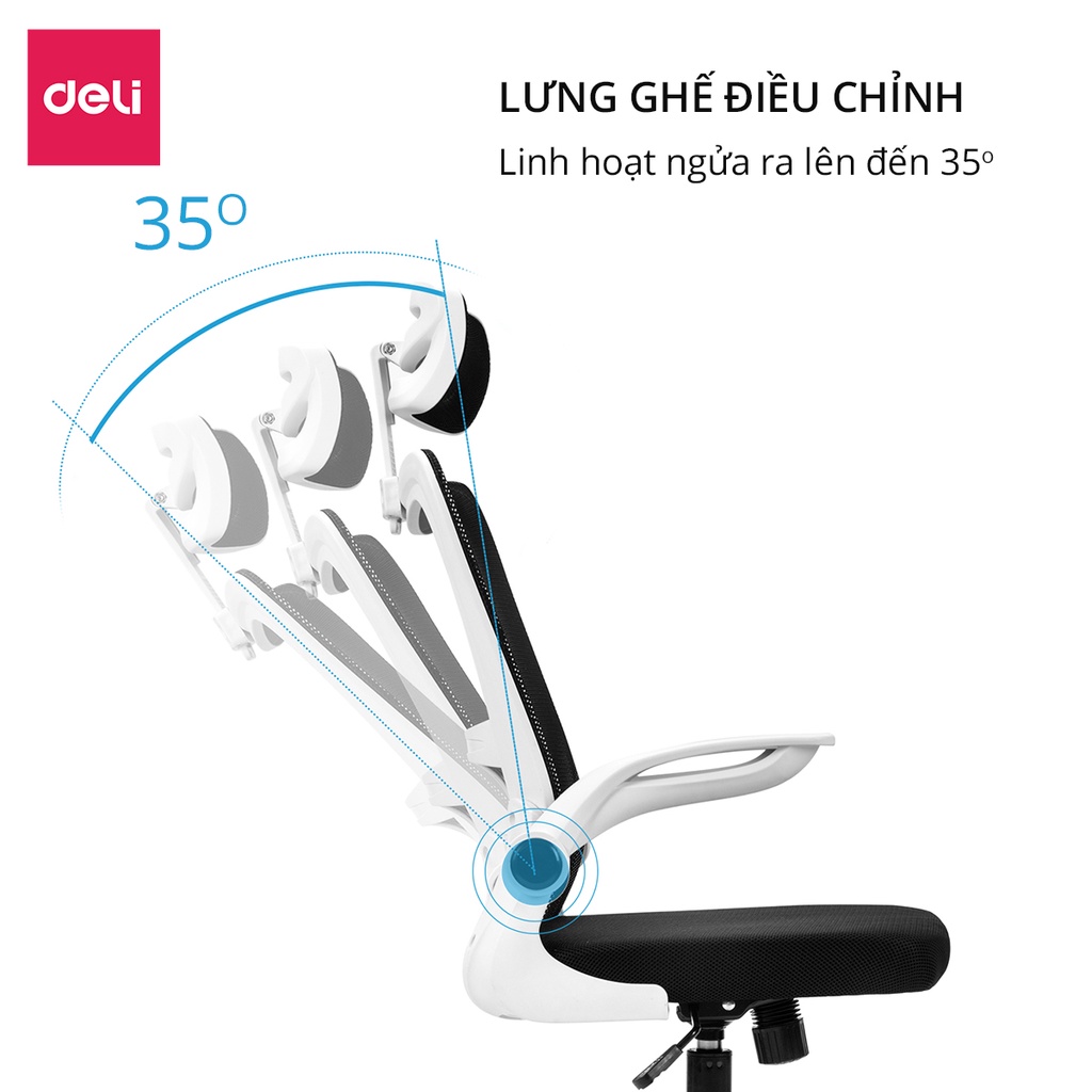 Nhà cửa & Đời sống > Nội thất > Ghế, ghế dài, ghế đẩu || [LIFECT44 mở 19H] Ghế xoay văn phòng Deli - Lưng kép, có gối tựa điều chỉnh độ cao chống mỏi, tay gập thông minh ECòn hàng
