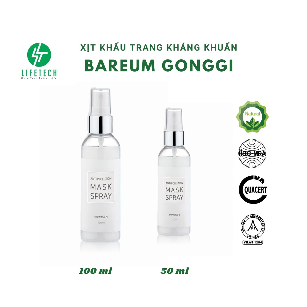Giới thiệu Lifetech-Chai xịt khẩu trang khử khuẩn - Chống bụi mịn Mask Spray Hàn Quốc Bareum Gonggi- xịt khẩu trang- filter- bộ lọc