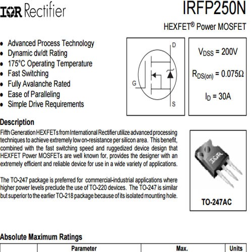 Giới thiệu Linh Kiện IRFP250 TO247 MOSFET N-CH 30A 200V