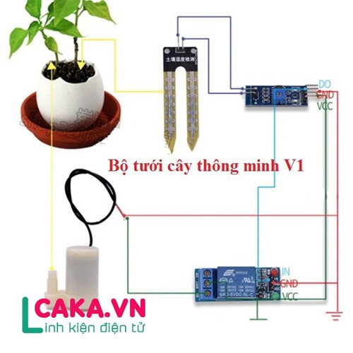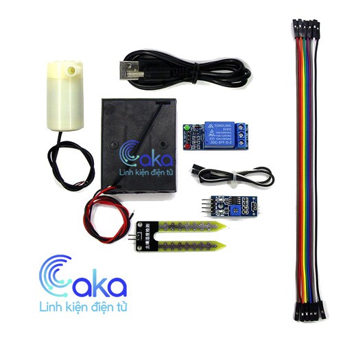 Bộ linh kiện máy bơm tưới cây tự động mini sử dụng Cảm biến độ ẩm đất tưới cây tự động là thiết bị mạch cảm biến thông minh được cắm trực tiếp vào đất. Ứng dụng trong các hệ thống tưới tự động. Người dùng có thể thiết lập khi đất khô sẽ tự động cảm biến kích hoạt bật mở relay và lúc này máy bơm nước sẽ hoạt động để bơm nước cho cây, khi đủ nước cảm biến sẽ tự động được kích hoạt để máy bơm ngưng hoạt động.Thông số kỹ thuật.