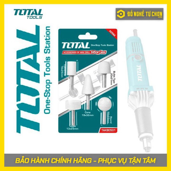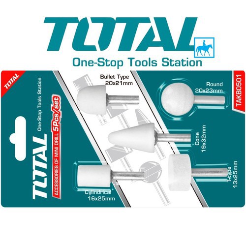 Linh kiện máy mài khuôn TG504062 Total TAKB0501 bao gồm các mũi mài khuôn với hình dạng khác nhau gồm có mũi hình trụ, hình viên đạn, hình nón, hình mũi T, hình vòng, … nhằm mục đích sử dụng tương ứng với loại vật liệu và mục đích gia công. Đặc biệt giúp cho các thợ cơ khí dũa, mài vật liệu nhanh chóng, dễ dàng.