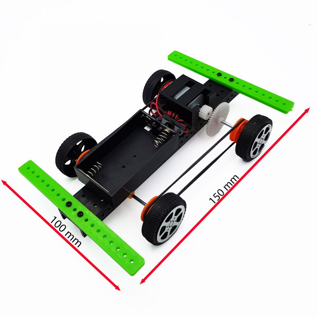 Bộ linh kiện sau khi cấp nguồn bằng 2 cục pin AA và bật công tắc, xe sẽ tự di chuyển trong lúc này sẽ thể hiện sinh động nguyên lý truyền động của bánh răng và truyền động ròng rọc