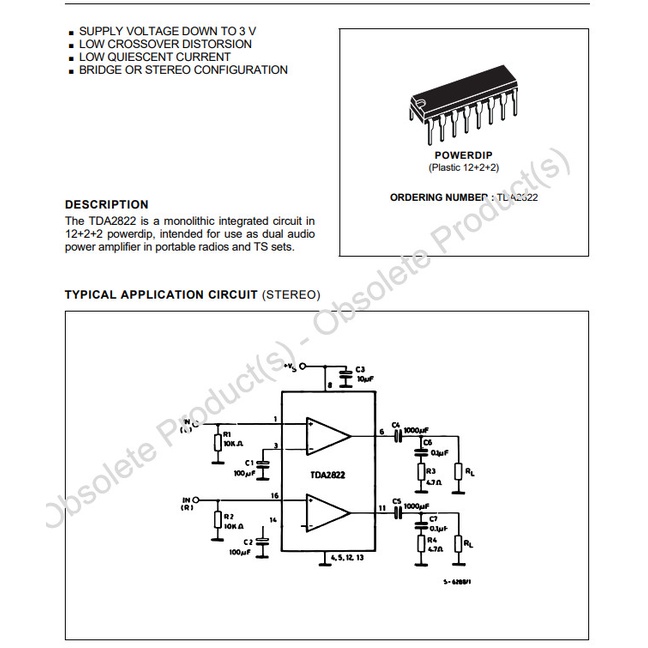 Linh kiện TDA2822 SOP-8 (9-12VDC)Mô tả sản phẩm