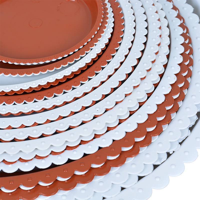 Đĩa nhựa lót chậu viền hoa nhiều size phù hợp cho nhiều kích thước chậu khác nhau, đặc biệt là đĩa chuyện dụng dùng cho chậu E đỏ gạch- 2 màu : Đỏ gạch _ Trắng