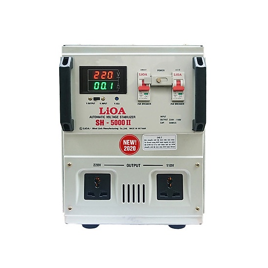 LIOA Ổn áp 1 pha 220V - 110V Từ 5000VA Hàng Việt Nam, chất lượng cao - BH 12 ThángỔn áp LiOA thế hệ mới được tối ưu hóa tính năng bằng việc sử dụng 2 Aptomat để thay đổi nguồn điện. Hai chiếc aptomat được lắp song song trước mặt máy và trong cùng một thời điểm chỉ có thể bật 1 aptomat lên. Nó có chức năng cho phép chúng ta đổi nguồn điện. Khi chúng ta muốn sử dụng nguồn điện đã qua ổn áp (aptomat A.V.S) hoặc muốn sử dụng trực tiếp nguồn điện lưới (aptomat DIRECT) Có công tắc đảo chiều báo điện áp vào (V.IN) và điện áp ra của máy (V.OUT) để kiểm tra điện lưới nhà mình có ổn định hay không.