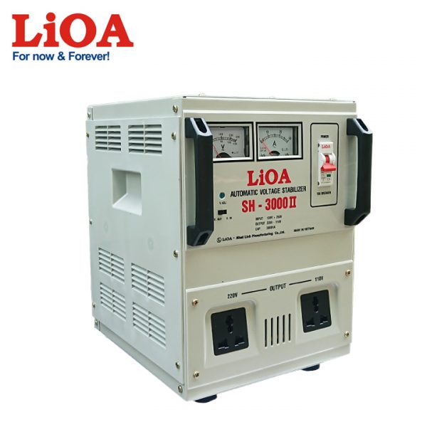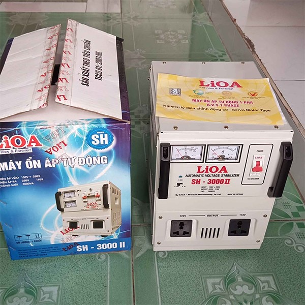 LIOA Ổn áp 1 pha 220V - 110V Từ 3000VA Hàng Việt Nam, chất lượng cao - BH 12 ThángỔn áp LiOA thế hệ mới được tối ưu hóa tính năng bằng việc sử dụng 2 Aptomat để thay đổi nguồn điện. Hai chiếc aptomat được lắp song song trước mặt máy và trong cùng một thời điểm chỉ có thể bật 1 aptomat lên. Nó có chức năng cho phép chúng ta đổi nguồn điện. Khi chúng ta muốn sử dụng nguồn điện đã qua ổn áp (aptomat A.V.S) hoặc muốn sử dụng trực tiếp nguồn điện lưới (aptomat DIRECT) Có công tắc đảo chiều báo điện áp vào (V.IN) và điện áp ra của máy (V.OUT) để kiểm tra điện lưới nhà mình có ổn định hay không.