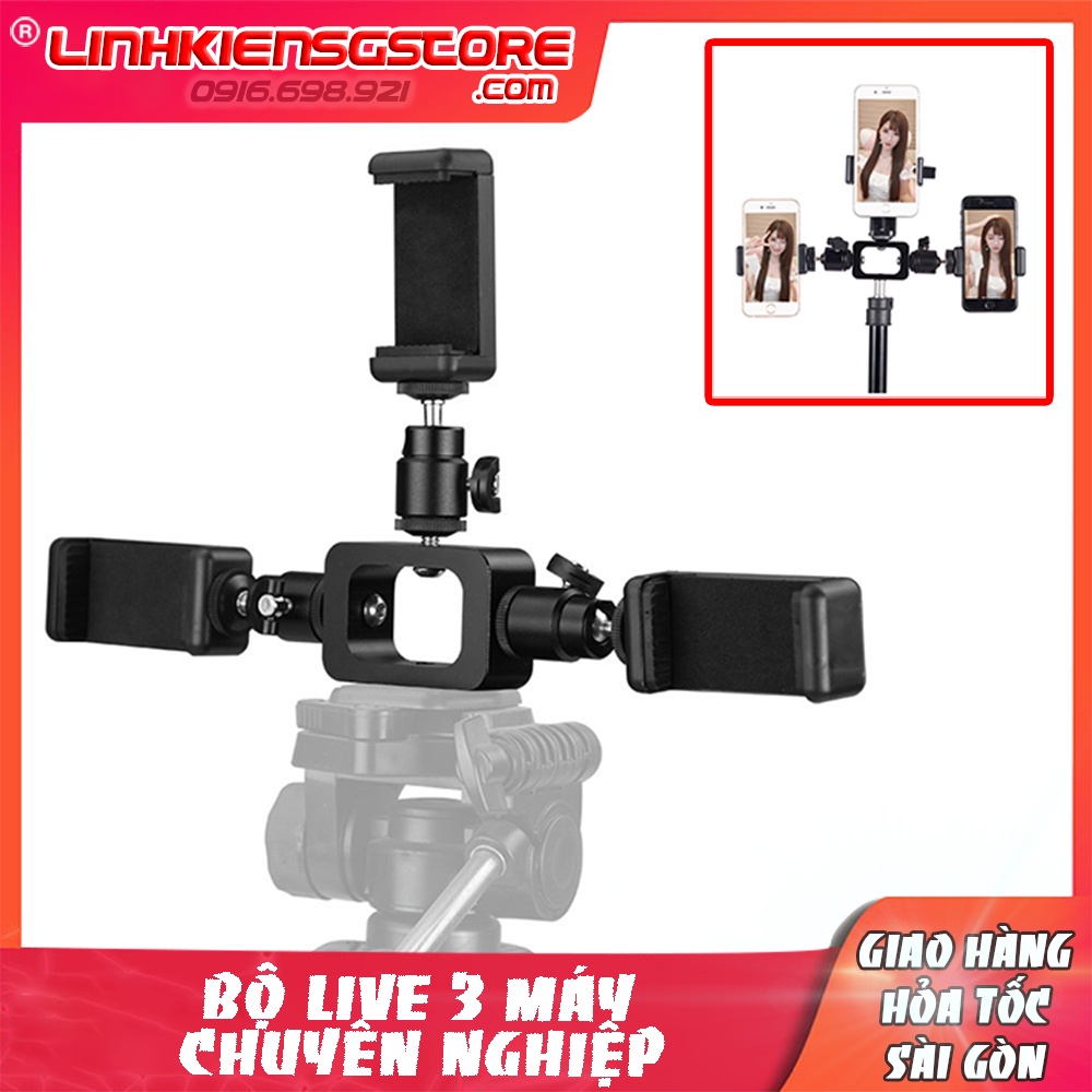 Bộ live 3 máy chuyên nghiệp - 3 kẹp điện thoại cao 2m quay tik tok ,livestream bán hàng , dựng phim.