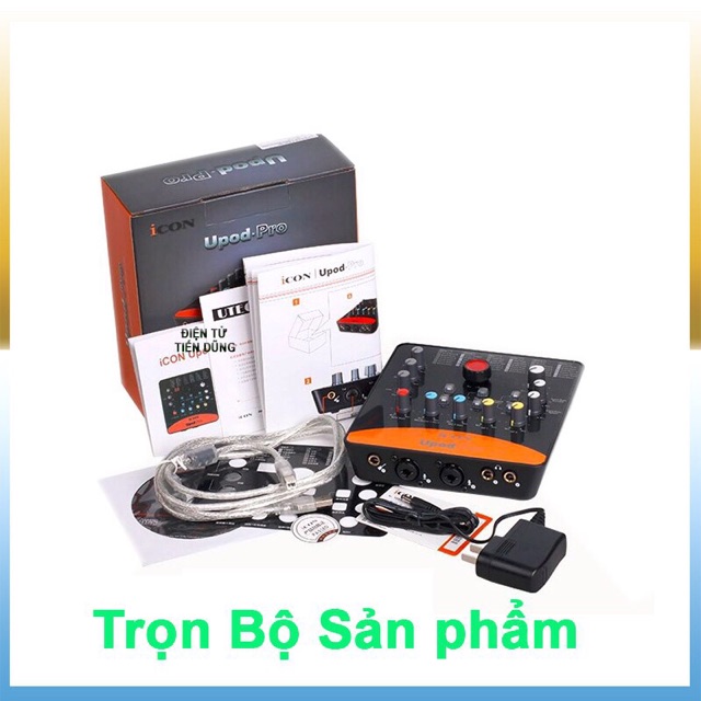 1 Sound Card Icon Upoud Pro và dây nguồn USB, dây lấy nhạc , dây live đi kèm , Zắc chuyển đổi 6 li -> 3,5mm.