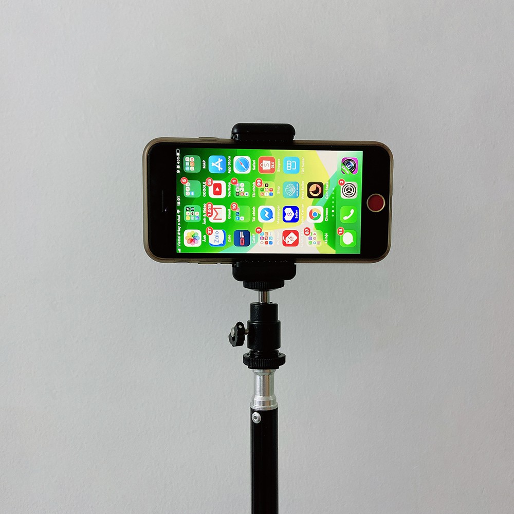 - Điện thoại được gắn trên giá đỡ giúp cố định điện thoại, chống rung giật để người xem livestream cảm thấy thoải mái. Bạn có thể để điện thoại chiều ngang hoặc chiều dọc đều được nhé.