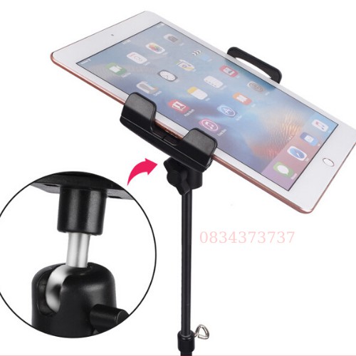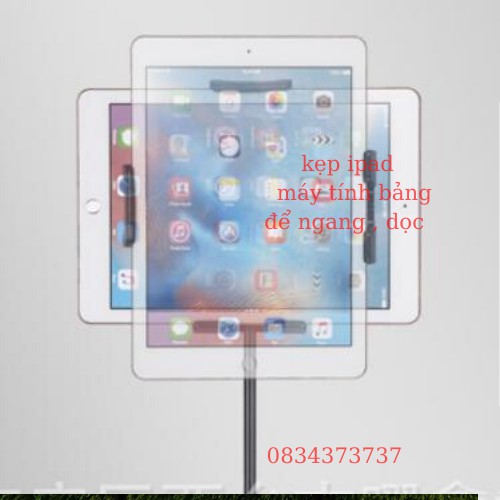 -Phần kẹp cho ipad máy tính bảng với thể kẹp khoảng từ 7inch đến 11 inch , có thể điều chỉnh đứng hoặc ngang tùy thích.