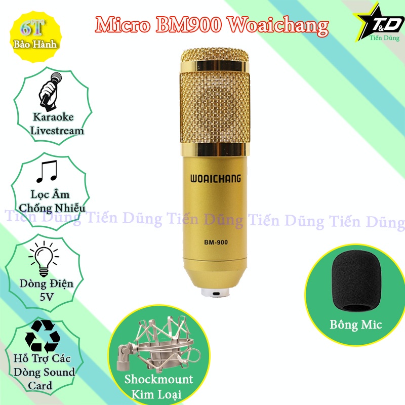 👉1 Micro BM900 Woaichang ( Mic BM900 WC, Shockmount kim loại, Bông mic , Dây mic )