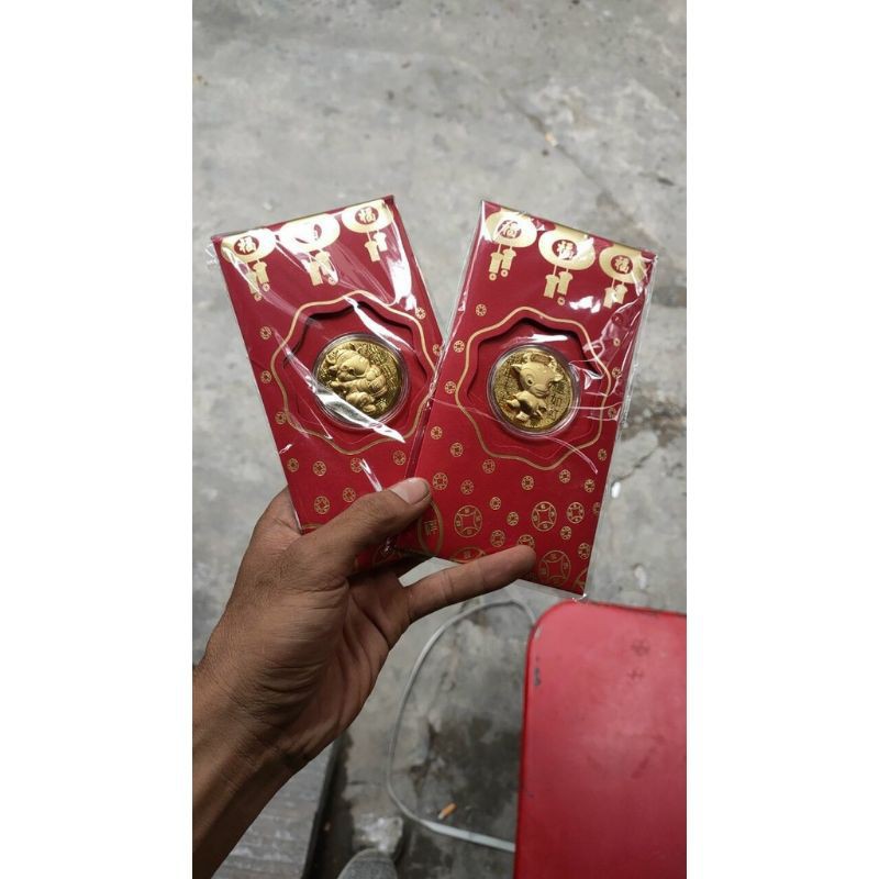 Lixi tếtFREESHIPLì Xì Thần Tài Trâu Vàng Mạ Vàng 24k HongKong 2021