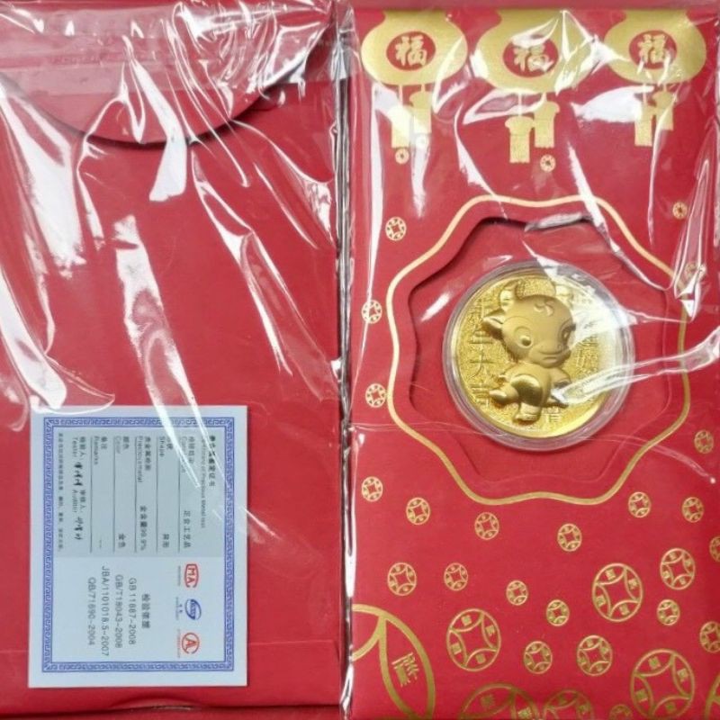 Nhà cửa & Đời sống > Trang trí nhà cửa > Khác || Lixi tếtFREESHIPLì Xì Thần Tài Trâu Vàng Mạ Vàng 24k HongKong 2021Còn hàng