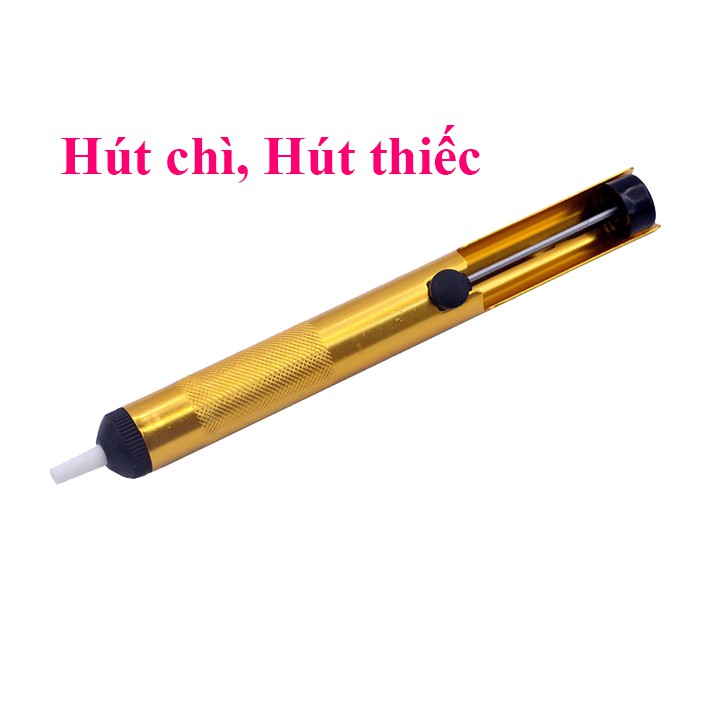 Dụng cụ hút thiếc hàn nhỏ dùng cho sửa chữa, hút sạch thiết hắn để nhấc linh kiện ra dễ dàng. Hút thiếc nhỏ có kích thước nhỏ gọn, vỏ ngoài bằng nhựa bền đẹp, chống trơn trượt trong quá trình sử dụng.Trong việc sửa chữa, thiết kế điện tử chúng ta sẽ không tránh khỏi việc tháo linh kiện điện tử ra khỏi board mạch in để kiểm tra hay thay thế do đó cần sự tỉ mỉ và chuyên nghiệp để không làm hỏng mạch in và linh kiện, thao tác càng nhanh càng hiệu quả và tiết kiệm được nhiều thời gian hơn.