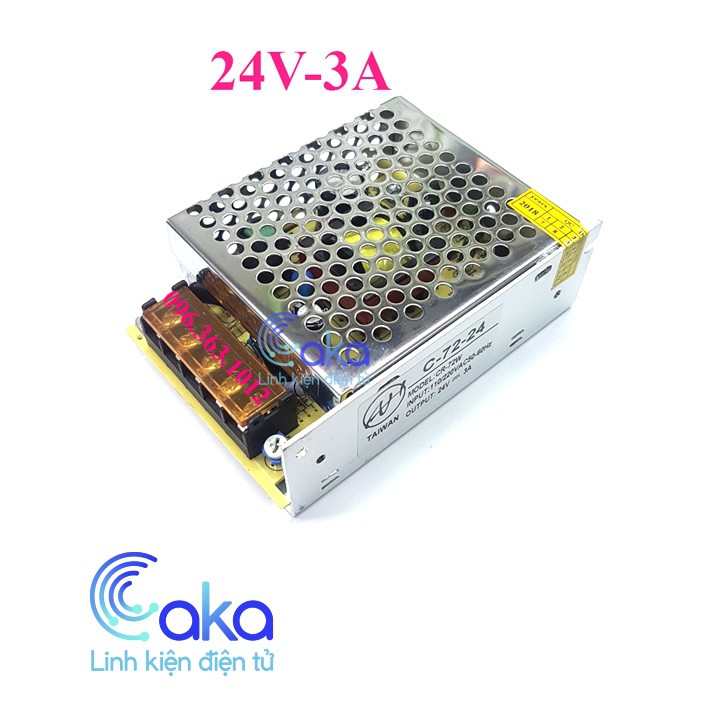 Nguồn tổ ong 24V 3A hay còn gọi là bộ chuyển đổi nguồn một chiều 24V được thiết kế để chuyển đổi điện áp từ nguồn xoay chiều 220VAC thành nguồn một chiều 24VDC để cung cấp nguồn cho các thiết bị điện tử như đèn led, biển quảng cáo, máy bơm, hay các bo mạch điện tử ....hoạt động.Thông số kỹ thuật : Nguồn tổ ong 24V 3A