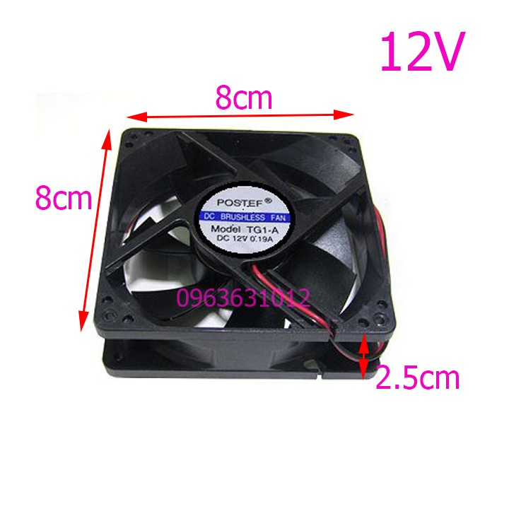 Quạt tản nhiệt 12V 8x8x2.5 cmĐiện áp hoạt động 12VDC.