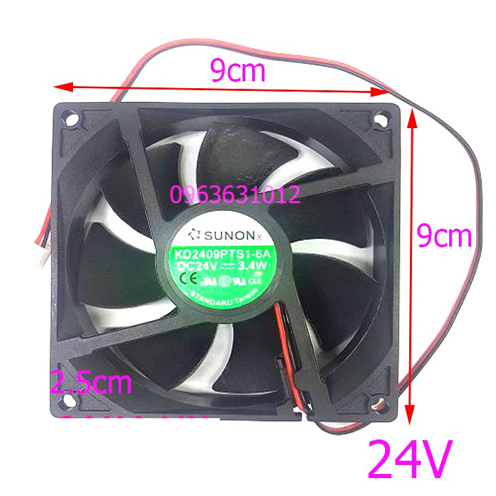 Quạt tản nhiệt 24V DC 9x9x2.5cm- Điện áp hoạt động 24VDC.