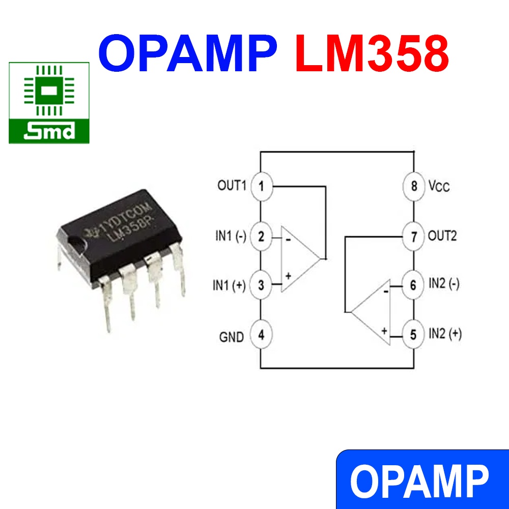 Giới thiệu LM358 OPAMP IC Khuếch Đại Thuật Toán LM358 DIP8 SOP8 UA741 TL082 TL072 NE5532 MV358 LMV358 các loại linh kiện điện tử