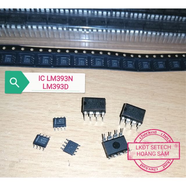 LM393 IC tương tự so sánh chân cắm, chân dán:- LM393N: kiểu chân DIP(8),hãng: ST; Dual Differential Comparator, Single Supply or Dual Supplies, Vcc: 2V.. 36V.