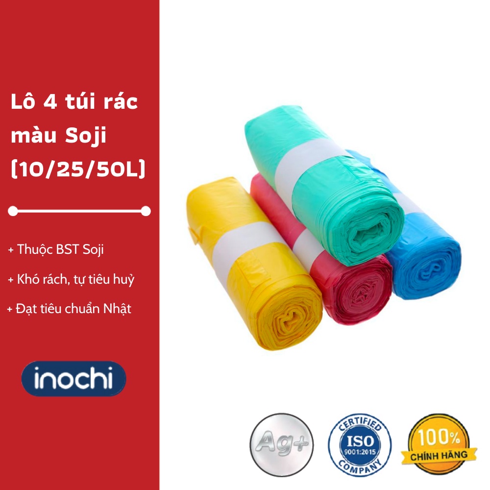 Giới thiệu Lô 04 túi rác tiện dụng Soji Inochi 10/25/50L ( 4 màu ) - Túi rác văn phòng và gia đình, Khó rách, Chất lượng Châu Âu