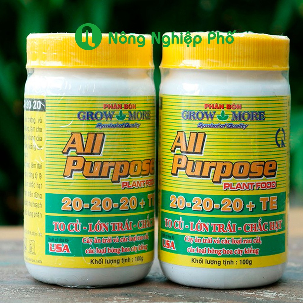 LỌ 100GRAM - PHÂN BÓN LÁ CAO CẤP GROWMORE ALL PURPOSE 20-20-20