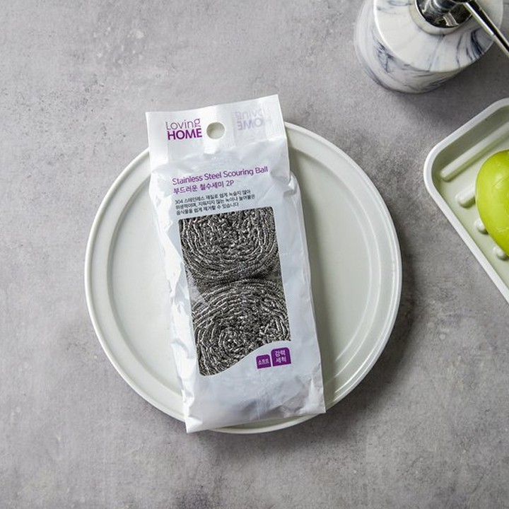 🧽 LÔ 2 CƯỚC CỌ RỬA INOX LOVING HOME러빙홈부드러운철수세미2P