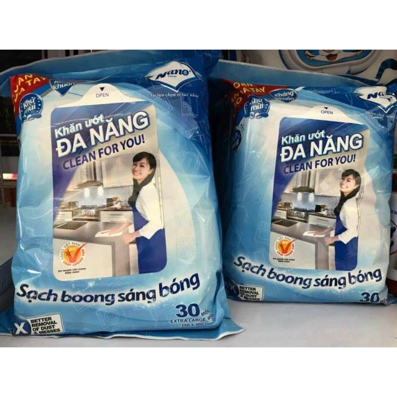 Nhà cửa & Đời sống > Dụng cụ chăm sóc nhà cửa > Khăn vệ sinh || Lô 2 Khăn ướt lau đa năng Nano 30 miếngCòn hàng