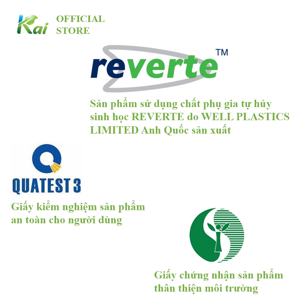 • Túi rác tự phân hủy sinh học KAI đã qua kiểm nghiệm và được xác nhận an toàn với người tiêu dùng, không chứa các chất phụ gia độc hại.