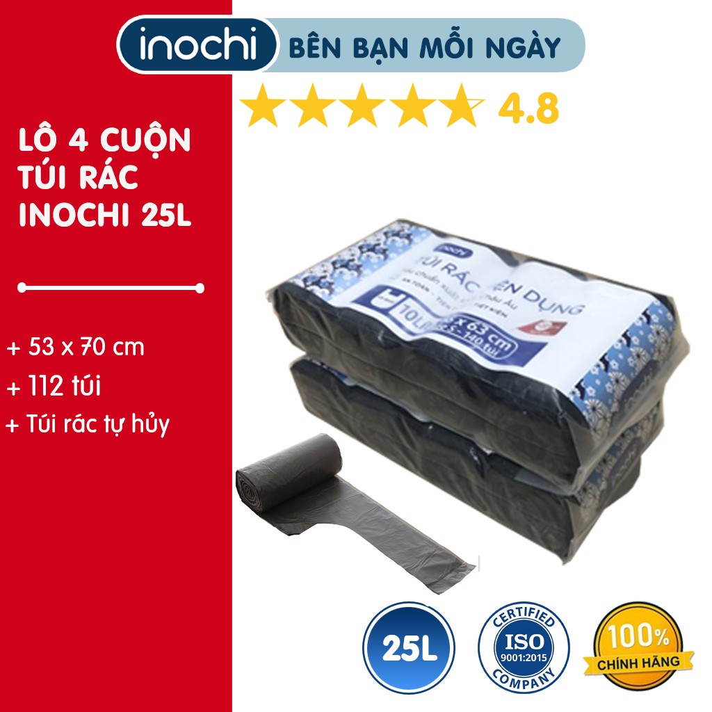 Nhà cửa & Đời sống > Dụng cụ chăm sóc nhà cửa > Túi nilon & túi rác || Lô 4 cuộn 112 túi rác tự hủy Inochi tiện dụng 25L (nhiều màu)Còn hàng